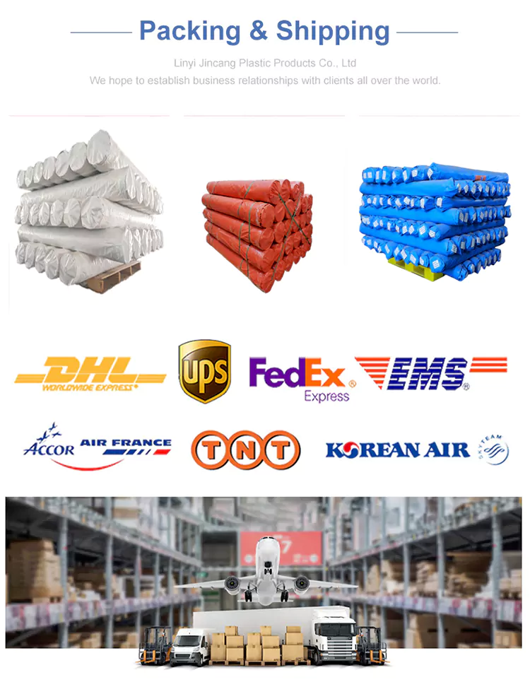 Jincang चीन मा एक पेशेवर पीई टारपॉलिन रोल निर्माताहरु मध्ये एक हो, 90 GSM स्ट्रिप PE टार्पॉलिन रोल रोल द्वारा प्याक छ। चौडाइ सामान्यतया 1.83m,2m,4m,5m,6m.The लम्बाइ सामान्यतया 63m,91, 100m 200m etc.and हामी पनि आफ्नो आवश्यकता अनुसार अनुकूलित गर्न सक्नुहुन्छ। यो व्यापक रूपमा बाहिरी सुरक्षा, सामानहरू ढाक्न, निर्माण साइटहरू, कृषि उद्देश्यहरू, र अस्थायी आश्रयहरूको लागि प्रयोग गरिन्छ।